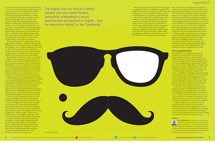 Psycholinguistic profiling and behavioural analysis can be extremely powerful tools when negotiating cases of extortion, blackmail and virtual or physical kidnapping, as Stephen Grossman explains.