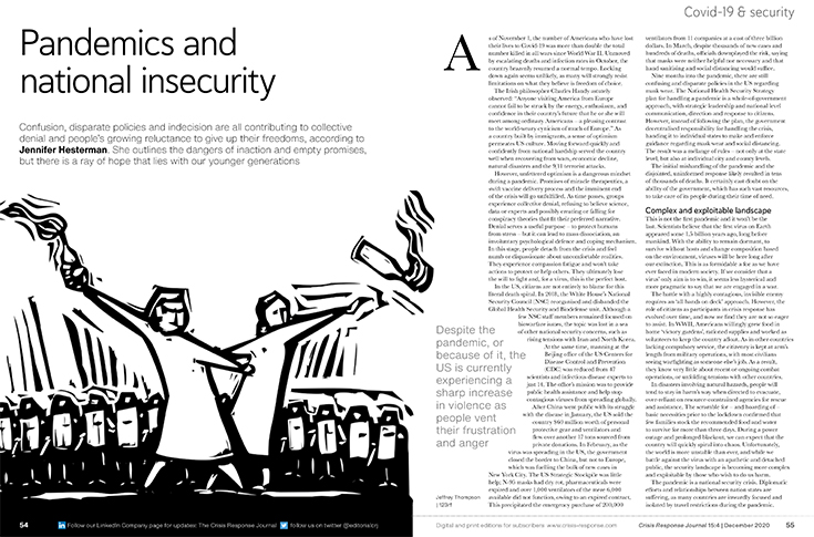Confusion, disparate policies and indecision contribute to collective denial and people’s reluctance to give up their freedoms, according to Jennifer Hesterman. Here, she outlines the dangers of inaction and empty promises but, she says, there is a ray of hope that lies within our younger generations